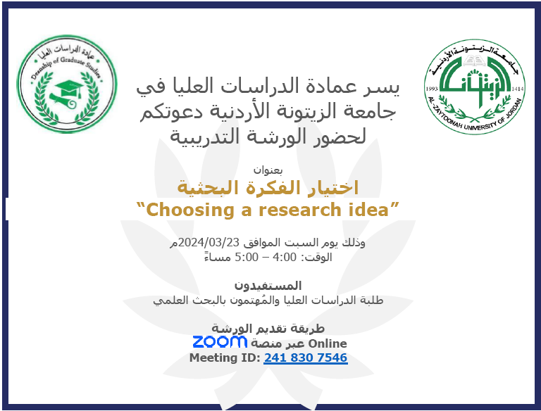 إعلان 13: مناقشات رسائل برامج الماجستير في جامعة الزيتونة الأردنية للفصل الدراسي الثاني من العام الجامعي 2024-2025