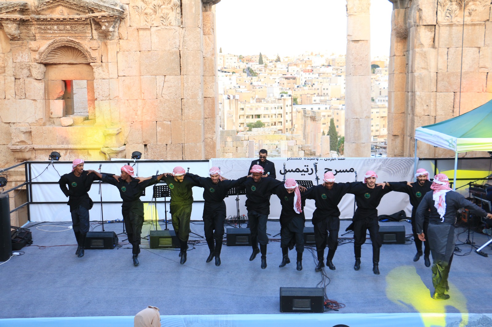The Deanship of Student Affairs at Al-Zaytoonah University of Jordan participated in the Jerash Festival for Culture and Arts, held in the city of Jerash as part of its 39th edition, from July 23, 2025, to August 2, 2025. Students from the university took part in the festival’s activities on Tuesday, July 31, 2025, at 6:30 p.m. on the “Artemis Theatre,” where the university’s Dabke troupe and choir presented outstanding performances during this major cultural event. The participation of students in the Jerash Festival represents a valuable opportunity for them to engage with diverse cultures and artistic expressions. It also reflects Al-Zaytoonah University’s commitment to promoting artistic and cultural activities and providing platforms for students to showcase their talents in various fields. The university continues to support initiatives that strengthen cultural identity and contribute to the dissemination of arts and music among Jordanian youth