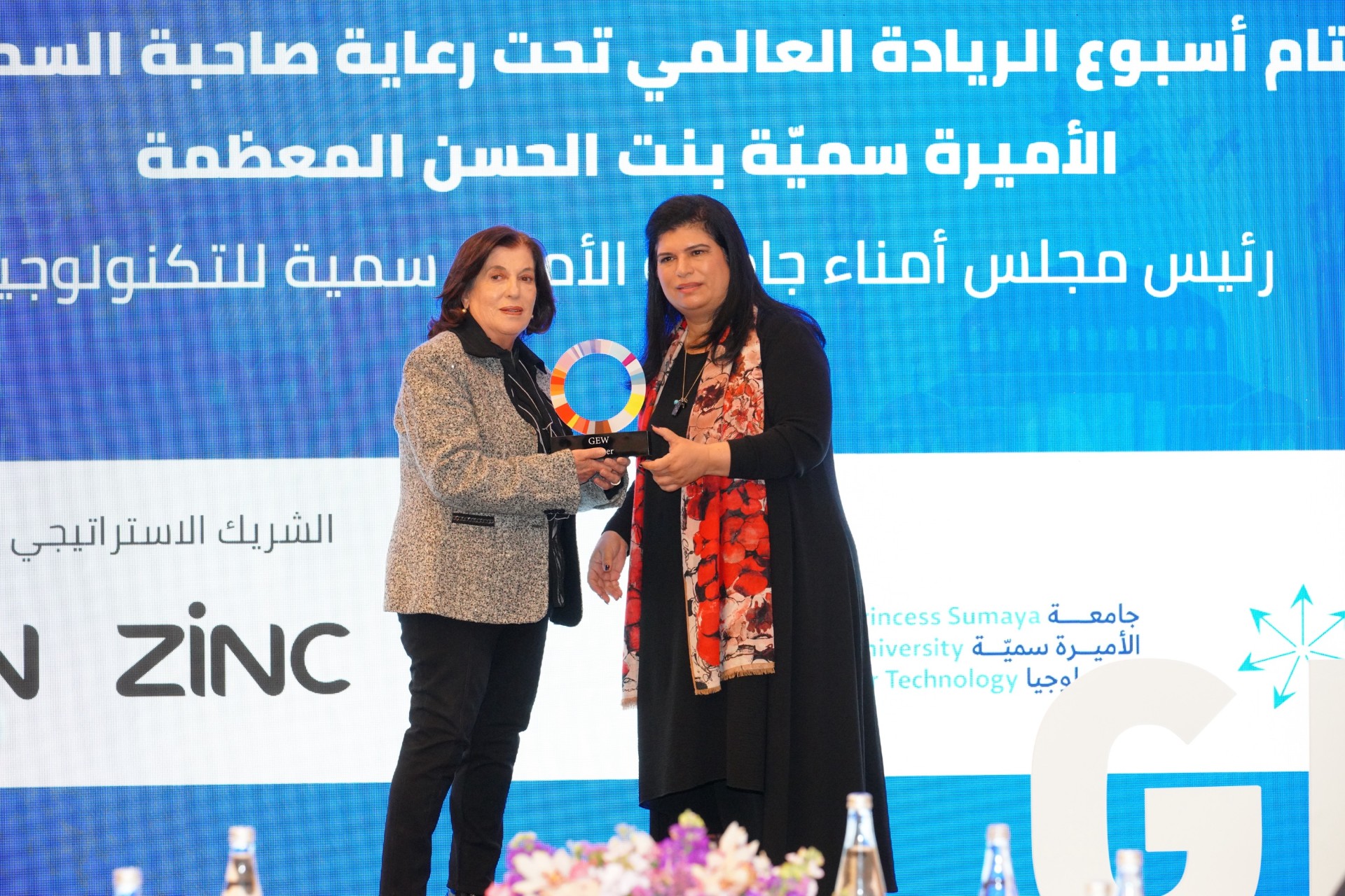 Her Royal Highness Princess Sumaya bint El Hassan, President of the Royal Scientific Society and Chair of the Board of Trustees of Princess Sumaya University for Technology, patronized the closing ceremony of the 17th edition of Global Entrepreneurship Week, held under the slogan “Together We Build.” The event is organized annually by the Queen Rania Center for Entrepreneurship at the University, in strategic partnership with the Zain Innovation Platform, with the participation of 23 public and private universities.