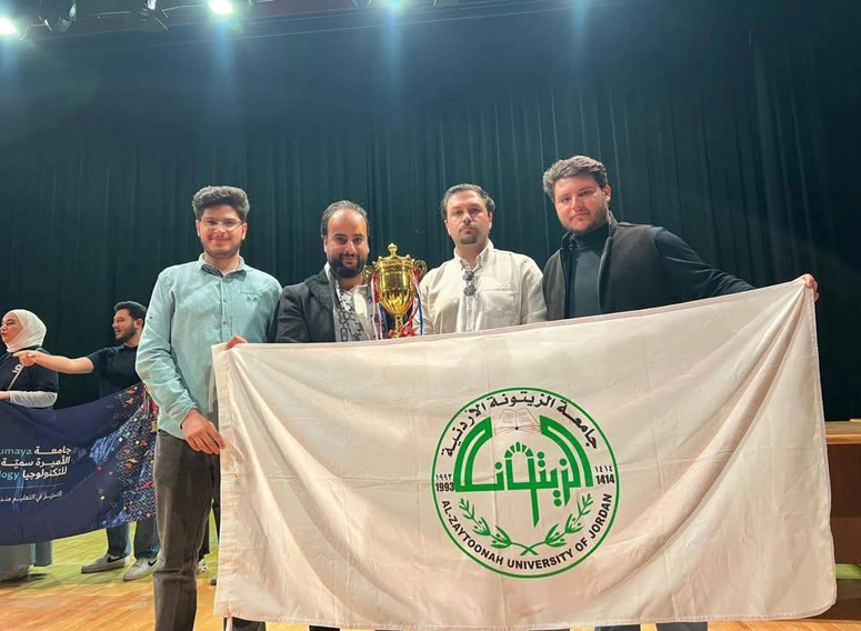 The team from the Faculty of Science and Information Technology at Al-Zaytoonah University of Jordan achieved second place in the 2025 National Robotics Championship, organized by the Arab Robotics and Artificial Intelligence Association and hosted by the Applied Science Private University.This achievement was earned through the winning project “Your Move,” an educational and therapeutic innovation designed for children with Autism Spectrum Disorder (ASD) and Attention Deficit Hyperactivity Disorder (ADHD). The project integrates real and virtual environments to provide an effective therapeutic and training setting, leveraging advanced technologies such as virtual reality and body motion tracking. This approach offers children a more interactive experience and supports the development of their educational and behavioral skills.The project was developed by a creative team of university students: Bashar Mohammad Muqaddam, Ahmad Khalaf Tamimi, Rashed Mousa Al-Khalidi, and Mazen Dimitri Qutainah, who embodied a strong spirit of innovation under the direct supervision and continuous support of the Department of Data Science and Artificial Intelligence and its Head, Dr. Alaa Al-Zoubi, in addition to the outstanding technical follow-up provided by Mr. Yazan Abd Al-Ghani.The championship results placed Princess Sumaya University for Technology in first place, Al-Zaytoonah University of Jordan in second place, and Applied Science Private University in third place.This accomplishment marks a new milestone in the university’s journey to support creativity and innovation, reinforcing its role in empowering students to develop technological solutions that serve society and advance education and scientific research.