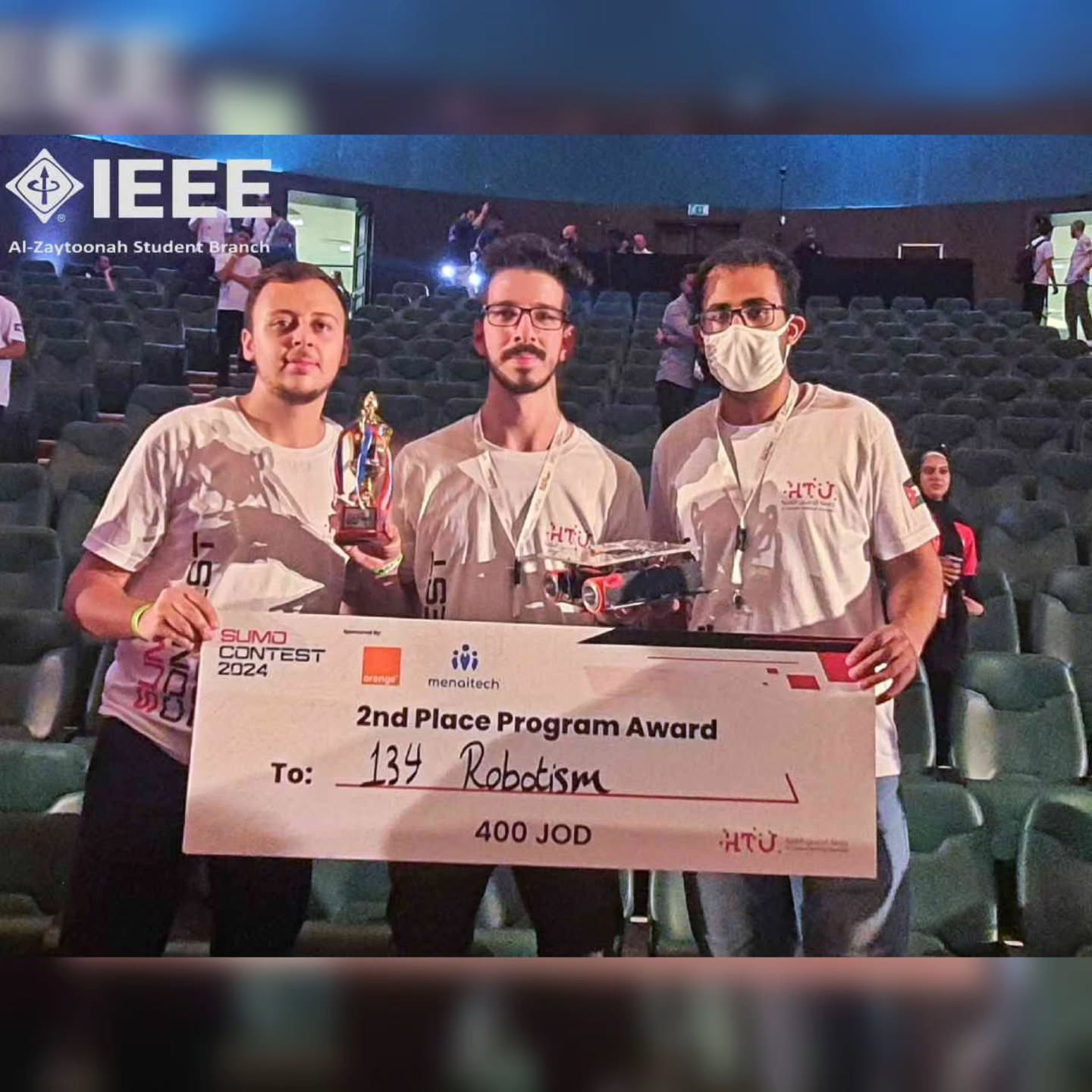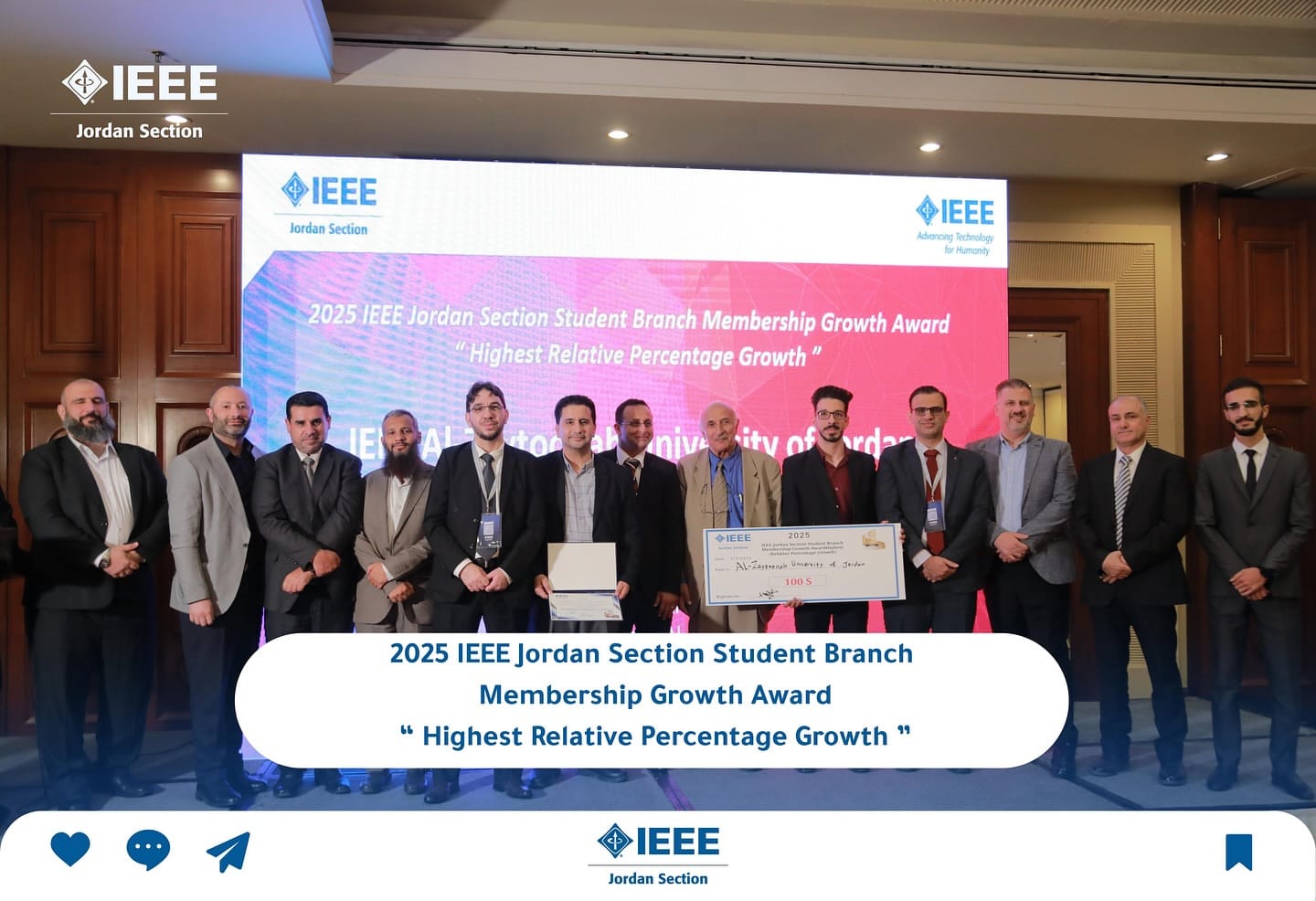 فاز IEEE الطلابي من قسم الهندسة الكهربائية في جامعة الزيتونة بجائزة نمو العضوية على المستوى الوطني في فرع IEEE الأردن.